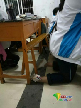 对于网传照片中有学生跪着和蹲着的情况,该老师向记者表示,这是由于老师要求学生整理桌面以及抽屉的原因,“我们学校要求学生课桌上不允许出现任何与学习无关的东西,所以班主任要求学生统一整理课桌,把与学习无关的物品放进课桌抽屉。有的学生在蹲着整理课桌的时候,感觉非常不得劲,就跪在了地上。”