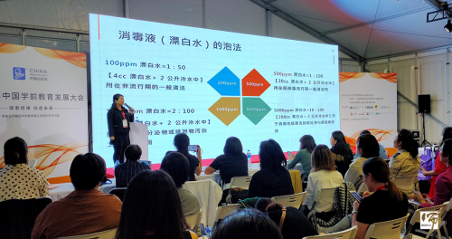 专注于产前产后及托婴照护的全方位护理师陈怡幸老师带来建立婴幼儿托育中心全方位感染控制机制,她解释托育中心感染管控的重要性及何谓全方位感染管控,陈怡幸老师也带来感染管制计划架构,传授在座园所负责人感染管控的办法,包括教玩具消毒建议、排泄物及呕吐物处理、肠胃及呼吸道症状的隔离消毒原则,让园所在发生这些环境或个人卫生问题时不不会束手无策。