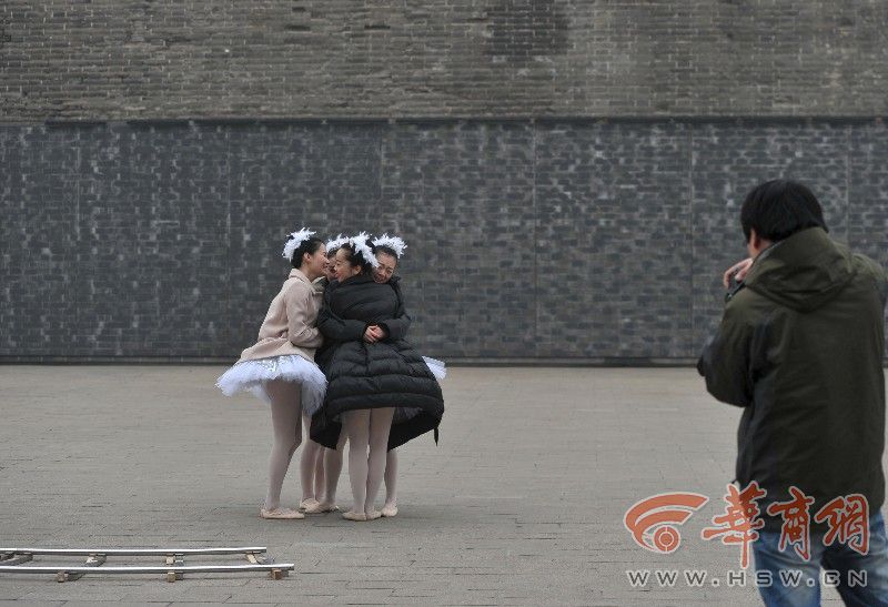 4女孩为艺术穿单衣拍照 抱团取暖(6)