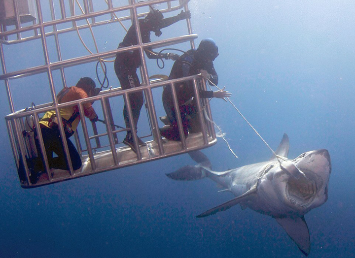 潜水员与大白鲨亲密接触 上演惊魂时刻(5)