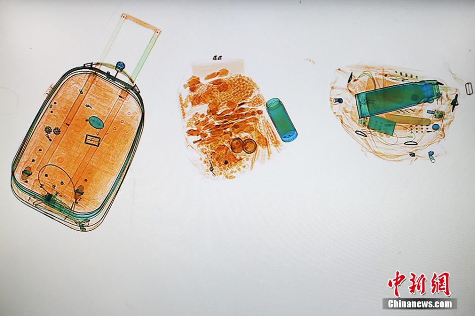 眼下正值春运高峰之际,各地火车站、汽车站等交通窗口迎来南来北往的大批旅客。2月2日,记者走进高铁南京南站,拍摄下了行李通过安检“X光机”所呈现的影像。当天值班的值班员王四梅告诉记者,安检是火车站一个最为重要的环节,涉及到每一位乘车的旅客,在她们部门,一个新来的同志必须经过两个多月的岗前培训,再在老同志的带领下长期实战,从监视屏中看一眼,就基本能知道这是个什么物品,在实践中练就了一双“火眼金睛”。泱波 摄