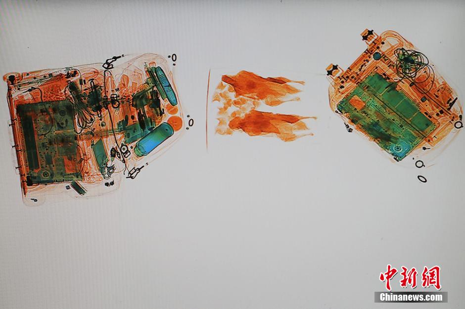 眼下正值春运高峰之际,各地火车站、汽车站等交通窗口迎来南来北往的大批旅客。2月2日,记者走进高铁南京南站,拍摄下了行李通过安检“X光机”所呈现的影像。当天值班的值班员王四梅告诉记者,安检是火车站一个最为重要的环节,涉及到每一位乘车的旅客,在她们部门,一个新来的同志必须经过两个多月的岗前培训,再在老同志的带领下长期实战,从监视屏中看一眼,就基本能知道这是个什么物品,在实践中练就了一双“火眼金睛”。泱波 摄