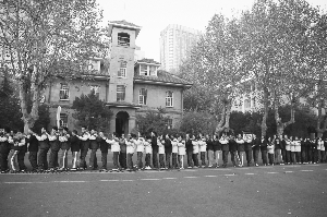 操场上,610名在校的高三学生按班级围成一个个大圈席地而坐。南京师范大学心理学院的26位在读研究生,带领他们用四个游戏一起放松身心。