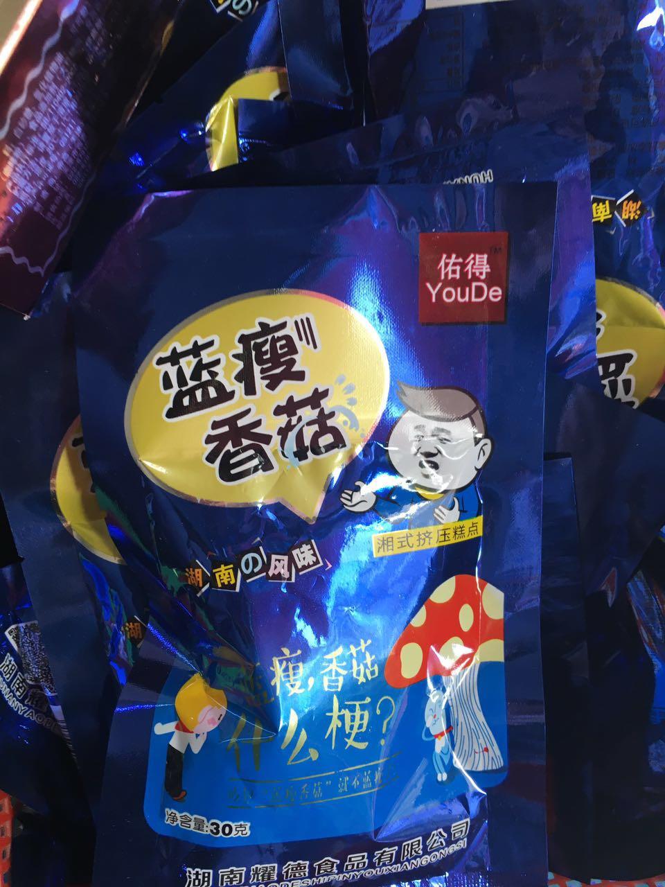 湖南星沙中南小学旁,网络流行语“蓝瘦”“香菇”成了这款小食品的主打风格。