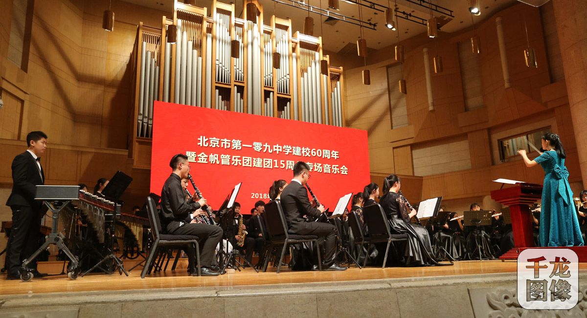 4月24日,北京市第109中学建校60周年暨金帆管乐团建团15周年专场音乐会在中山音乐堂举行。图为演出现场。千龙网记者 戚连民摄