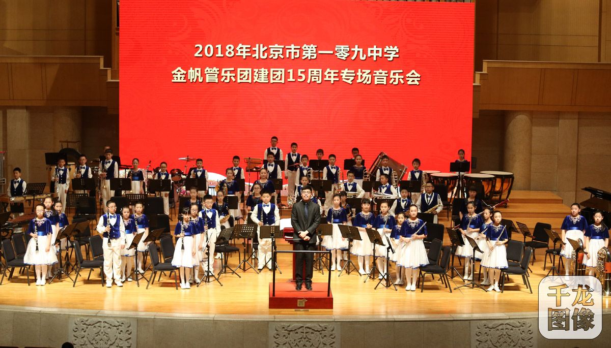 4月24日,北京市第109中学建校60周年暨金帆管乐团建团15周年专场音乐会在中山音乐堂举行。图为演出现场。千龙网记者 戚连民摄