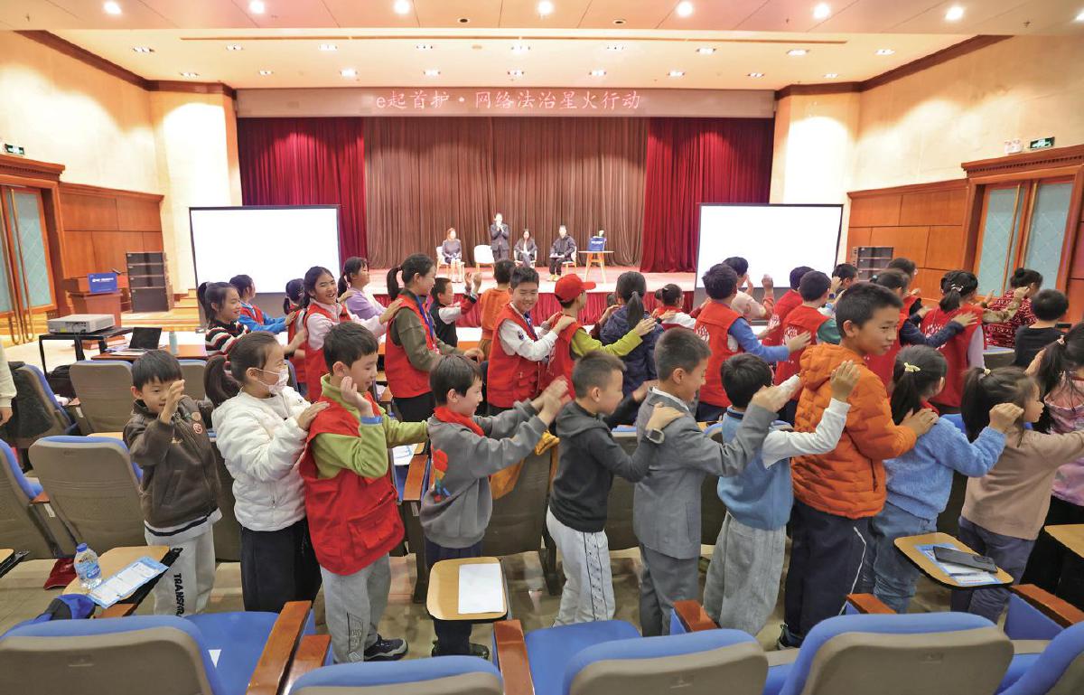 深入解读关于未成年人的网络保护法律规定,共同探讨如何在人工智能时代让儿童安全触网,大学生带领孩子们通过游戏的方式提升网络素养……11月8日上午,北京市朝阳区人民法院第一法庭内外,欢乐声此起彼伏,这是“e起首护·网络法治星火行动”——青少年网络普法与安全素养主题活动的现场。