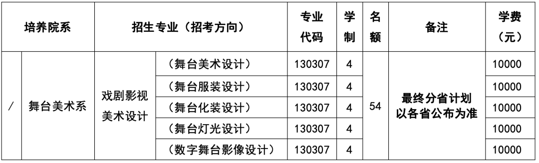 戏剧影视美术设计专业使用省级统考成绩录取,编制分省计划;