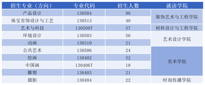 2026年产品设计、珠宝首饰设计与工艺、艺术与科技、环境设计、公共艺术、动画、绘画、中国画、雕塑、摄影专业不组织校考,编制分省分专业招生计划。
