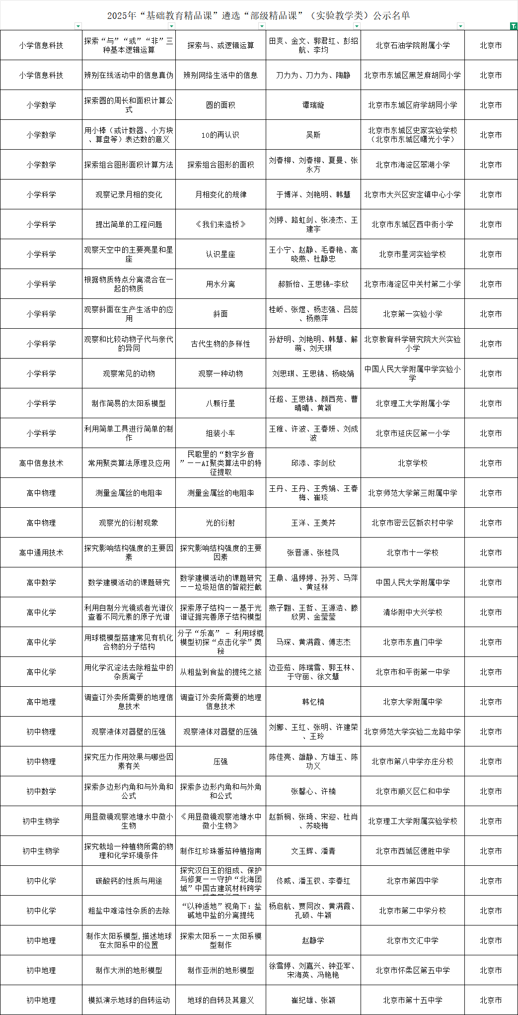 2月2日,教育部基础教育司发布了关于2025年“基础教育精品课”遴选“部级精品课”名单的公示信息。