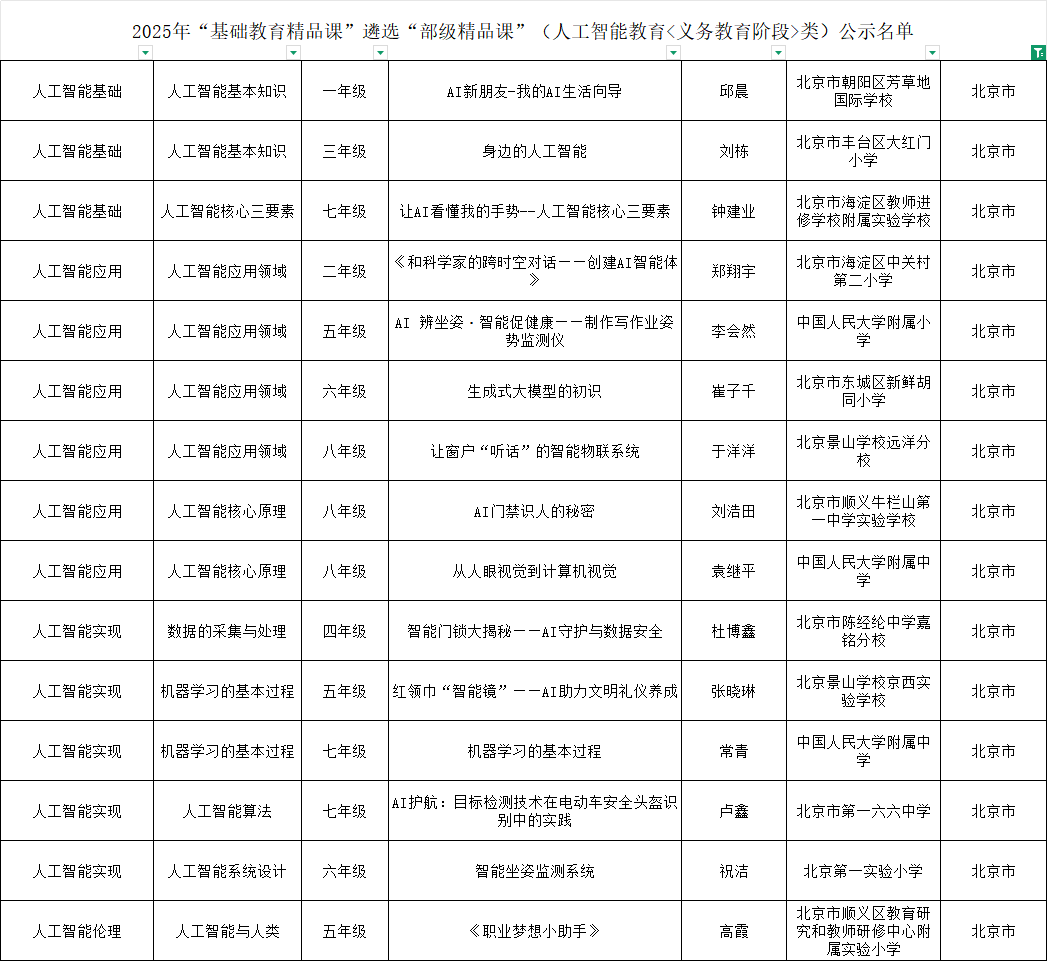 人工智能教育<义务教育阶段>类公示名单(北京地区)