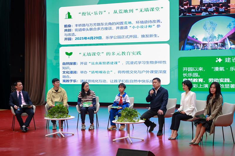 背着书包的孩童,是公园的“小小园林设计师”,用童真的视角,为城市添一抹新意。牵着孩子手的父母,是学校最活跃的“教育合伙人”,用陪伴与参与,和学校同频守护成长。街道的负责人,是学院式街区的探索者和建设者,用精细服务和主动作为让荒地变成孩子们能够自由奔跑、自由呼吸的乐学空间。园林工作者,是连接孩子与自然的引路人,在通俗易懂的讲解和循循善诱的实操指导中,为孩子们种下热爱自然的根。老师也在无界的天地里,打破“传道者”的单一身份,和学生一起探索,一同成长。从课内到课外,从课本到实践,教学相长的声音,始终回响。