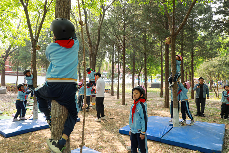 当校园的物理围墙被温柔打破,城市的每一寸土地都成了滋养成长的沃土。定向越野课、自然爬树课、破锋八刀课、代际挑战赛、自然疗愈课......在现场推进会的课程观摩环节我们看到,孩子们在阳光下奔跑,在大树上攀爬,汗水落在土地上,笑声穿过林间,天性在无界的空间里尽情释放。丰台,这座拥有800多年花木史的绿色根脉之地,正将“城绿花香 园融景美”的愿景融入教育的每一寸土壤。